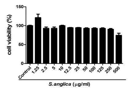 갯끈풀 추출물의 농도는 1.25~250 ㎍/ml로, 염증 유도 싸이토카인인 TNF-α 및 IFN-γ에 의해 염증이 유발된 세포에서 TARC와 MDC의 발현을 억제함.