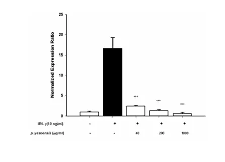 김 에탄올 추출물은 IFN-로 인한 MDC 유전자 발현을 농도의존적으로 억제하였으며, TNF- 처리 조건에서도 유사한 억제 효과를 나타냄.