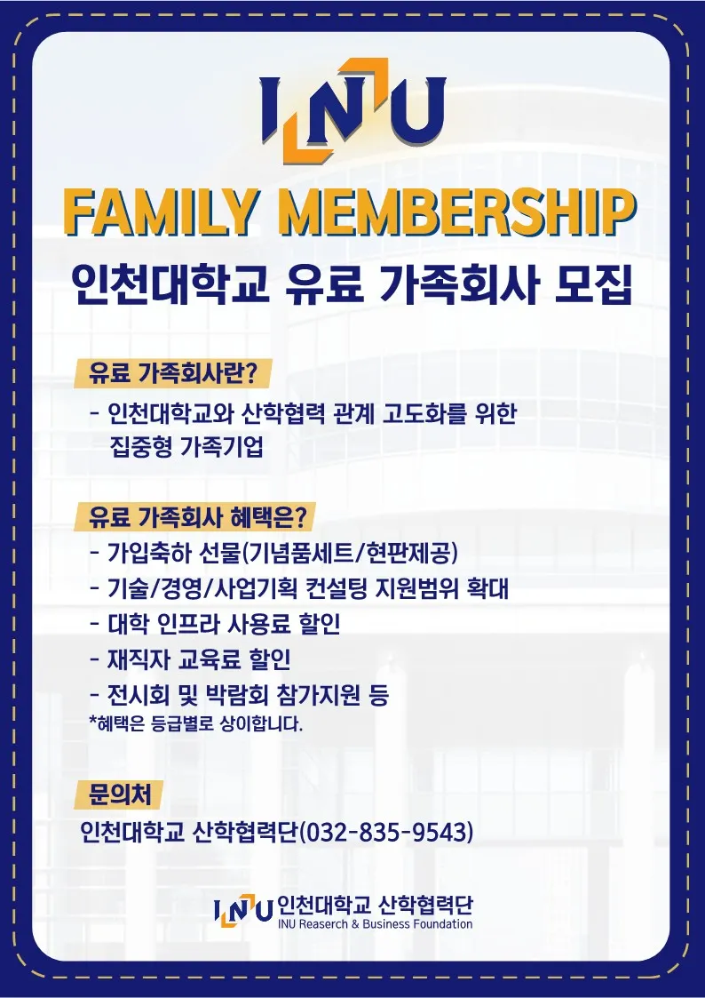 인천대학교 가족회사 및 지원제도를 소개해 드립니다.