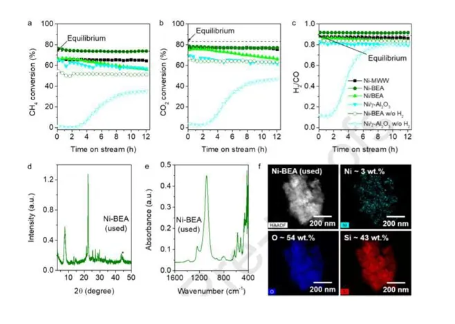 니켈 실리케이트 Ni-BEA는 프레임워크 내 균일하게 니켈이 치환되어 건식 개질 반응(DRM)에서 높은 활성과 안정성을 보임.