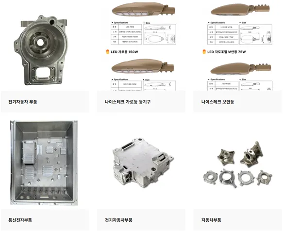 당사는 2002년 10월 설립된 이래, 알루미늄, 아연 다이캐스팅, MCT 가공으로 전자부품, 통신부품, 자동차부품 등 여러 산업에 공급해오고 있습니다.
