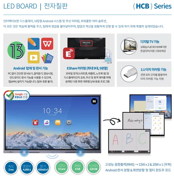 주요제품 : 전자칠판(인터랙티브 화이트보드), 전자교탁, 정보통신기기 등 제조 및 판매 외