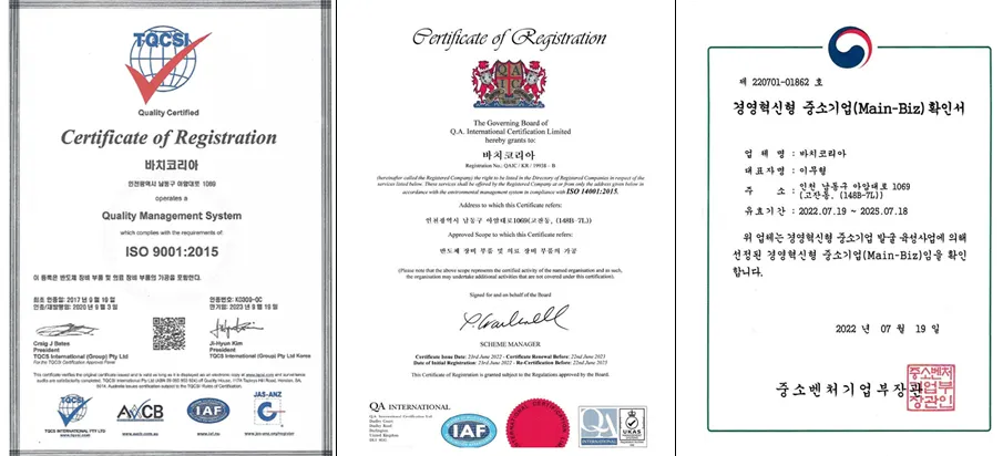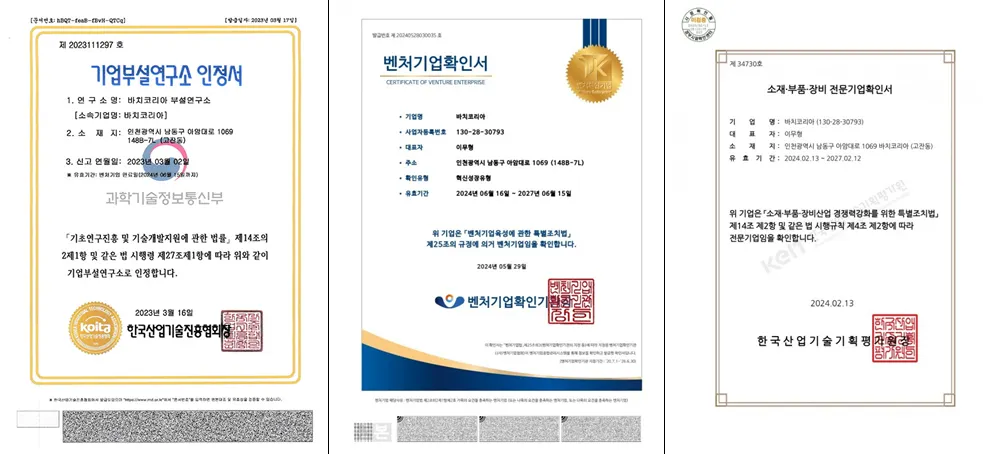 바치코리아(주)(BACHI KOREA Co., Ltd.)는 의료용 장비 및 로봇 부품 국산화, 대구경 배관 압착기 제조, 반도체용 고진공 펌프 수리, 산.학.연. 공동 개발 등을 수행하는 정밀 제조 전문 기업입니다. 다양한 산업 분야에서 기술력과 신뢰를 바탕으로 성장하고 있습니다.