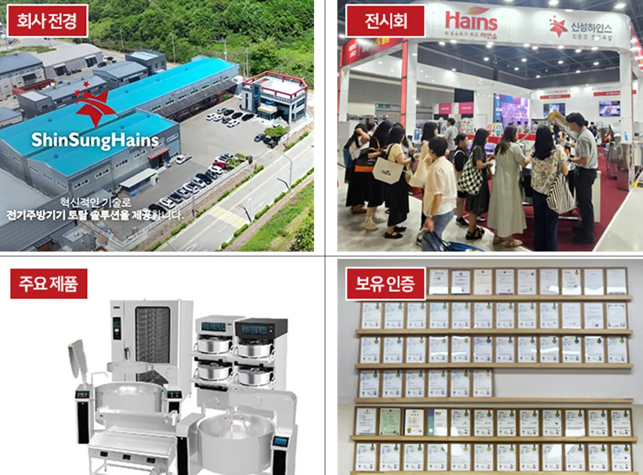 ㈜신성하인스(ShinSungHains Co., Ltd.)는 단체급식 및 외식 산업을 위한 친환경 전기 조리기기(인덕션 주방 설비)를 전문적으로 개발·제조하는 기업입니다. 조리 환경의 안전성, 에너지 효율, 작업 편의성을 높이는 기술력을 기반으로 다양한 산업 현장에 솔루션을 제공하고 있습니다.