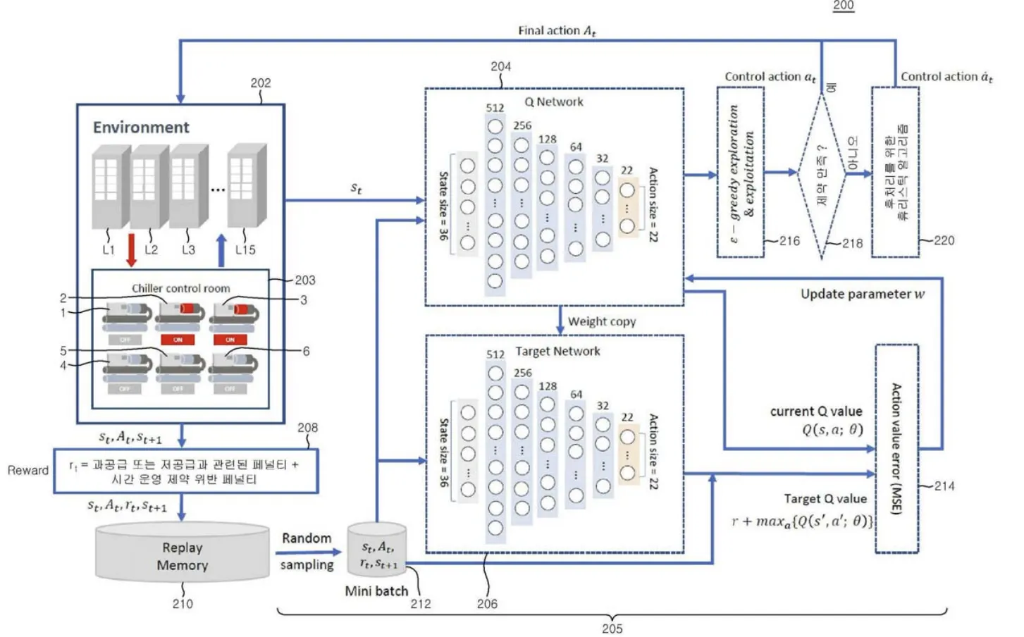 특허명: 심층 강화학습 기반의 다건물 냉방 시스템 운영 방법 및 장치