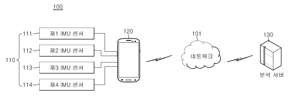본 발명은 사용자의 신체 자세와 스마트 기기의 작업을 추정하여 거북목 증후군을 감지하는 시스템을 제공함. 이 시스템은 스마트 기기에 내장된 관성 측정 유닛(Inertial Measurement Unit, IMU) 센서를 통해 사용자의 경부, 흉부, 요추의 굴곡 각도를 측정하여 데이터를 수집함.