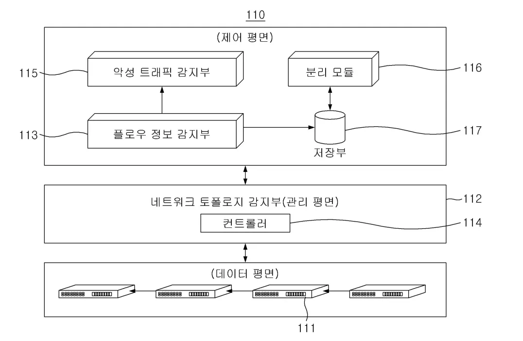 SDN 스위치로부터 모든 패킷을 수신하고, 플로우 엔트리를 생성하여 전송함. 이를 통해 비정상적인 패킷 동작을 감지함.