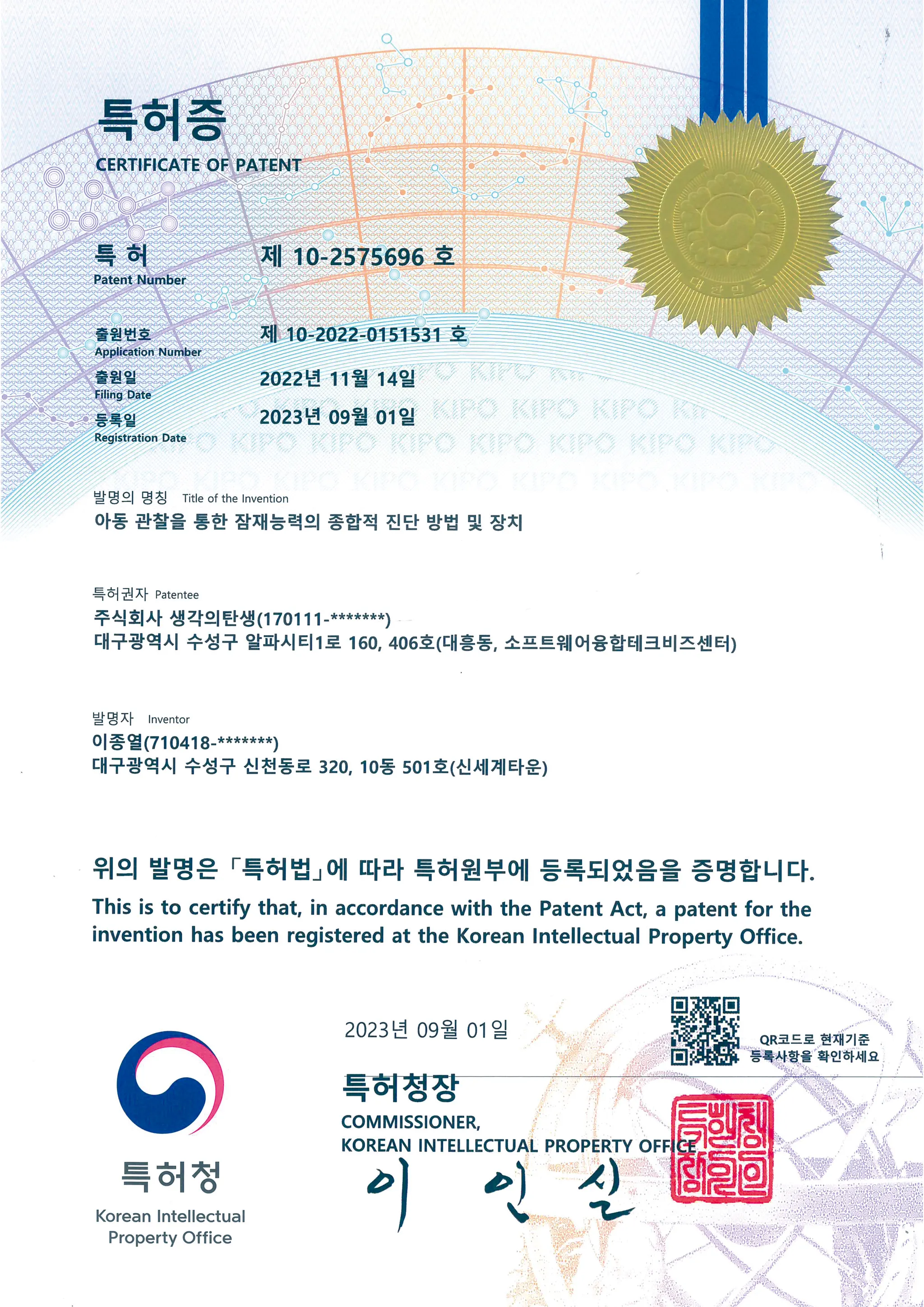 관찰방법 : 아동 관찰을 통한 잠재능력의 종합적 진단 방법 및 장치 (제 10-2575696호)