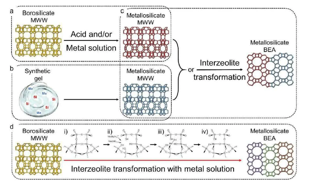각 금속 전구체 용액으로 보로실리케이트 MWW의 단일 단계 수열 제올라이트간 구조 전환법을 통해 코발트, 니켈 및 아연실리케이트 BEA 제올라이트의 합성을 체계적으로 조사하여, 산업 분야에서의 효율적인 촉매 제조 방법 제공함