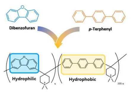 폴리(dibenzo-p-dioxin-para-terphenyl piperidinium) 공중합체를 사용해 고분자 멤브레인과 음이온 교환 멤브레인을 제작하며, 이는 연료전지에 적용 가능한 음이온 교환 멤브레인 기술임