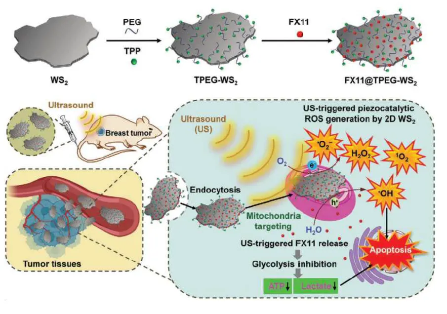 이 나노시트는 초음파 기반 압전역학 및 에너지대사 표적 화학요법 병용 암치료에 효과적임