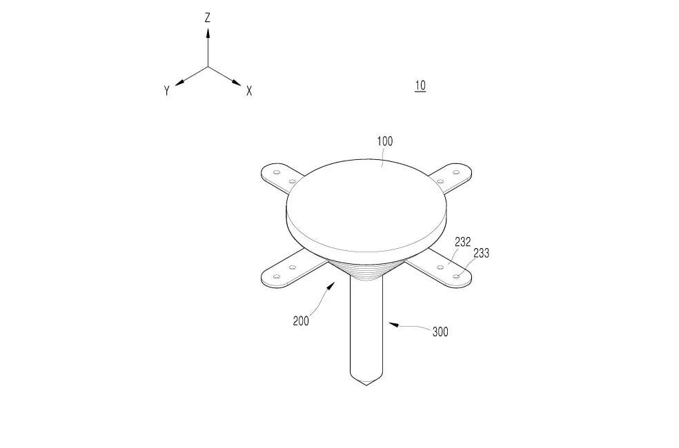 적층된 팽이말뚝은 원반부, 원뿔 형태의 팽이부, 및 원기둥 형태의 파일부로 구성됨. 팽이부는 중심축을 따라 중심홀이 형성되며, 파일부는 금속으로 형성되어 중심홀에 삽입됨 .