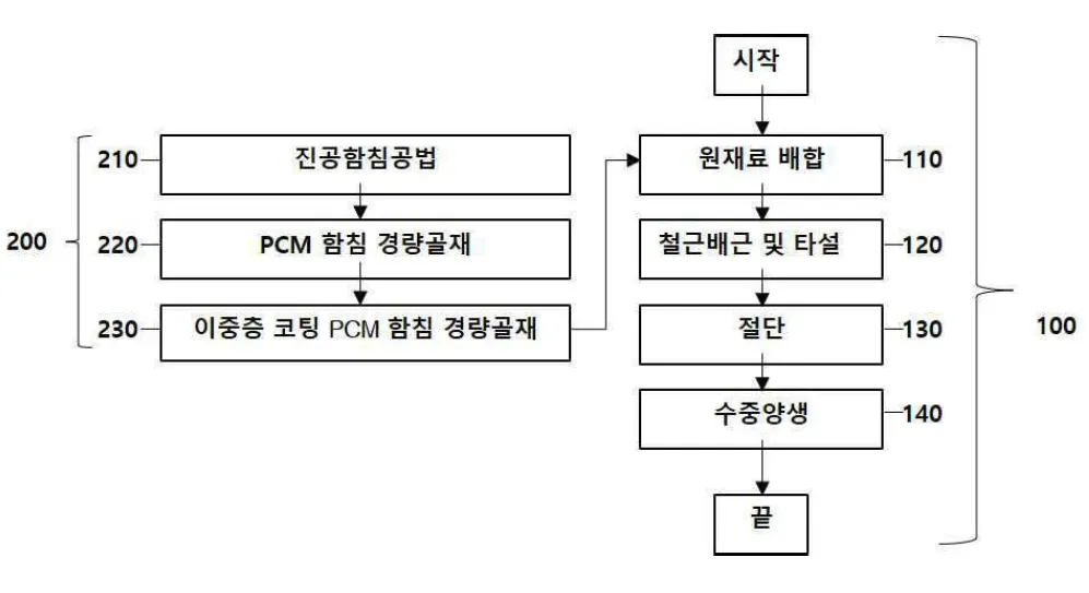 본 발명에 따르면, 콘크리트 제조 시 사용되는 시멘트 대신에 순환자원인 비탄산염 원료를 활용함으로써 낮은 탄소배출량으로 에너지를 절감시킬 수 있습니다. 또한, 이중층 코팅된 PCM 함침 경량골재의 활용을 통해, 건물의 에너지 효율성을 높이고, 겨울철 건축구조물 외벽 쪽 방의 온도가 낮은 문제점을 개선할 수 있습니다. 이로써, 본 발명은 기후 변화 대응 및 에너지 절약에 중요한 역할을 할 것으로 예상됩니다.