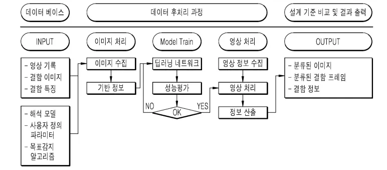 이 발명은 구조물을 촬영한 영상에서 유효 프레임을 추출하고, 그 프레임들의 광학 흐름을 분석하여 구조물의 건전성을 판단하는 시스템임. 3차원 이미지를 2차원 이미지로 변환 후, 여기에 기계를 학습한 AI 기반의 알고리즘을 적용하여 손상을 예측함.