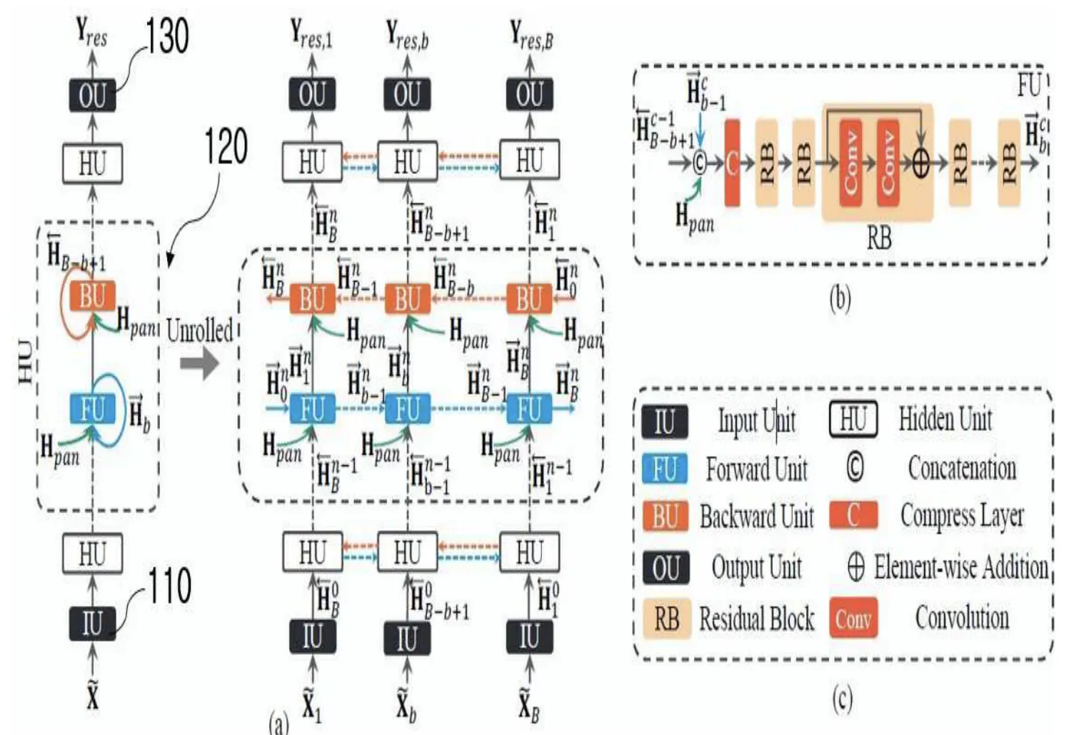 양방향 순환 팬샤프닝 네트워크는 순방향 유닛과 역방향 유닛을 가지고 있어, 이전과 이후의 정보를 모두 활용