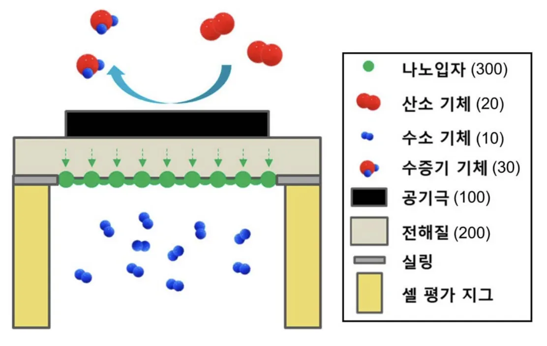 나노 금속 입자 촉매가 수소와 반응하면서 전자와 수소이온으로 분리되는 과정이 잘 진행됨.