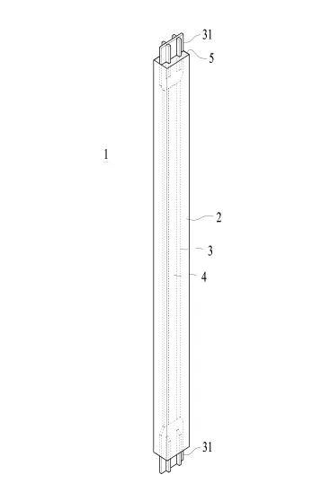 외부 케이싱은 단면이 얇은 관 형상으로 형성되며, 코어 부재는 직사각형 단면의 플레이트 형상임.
