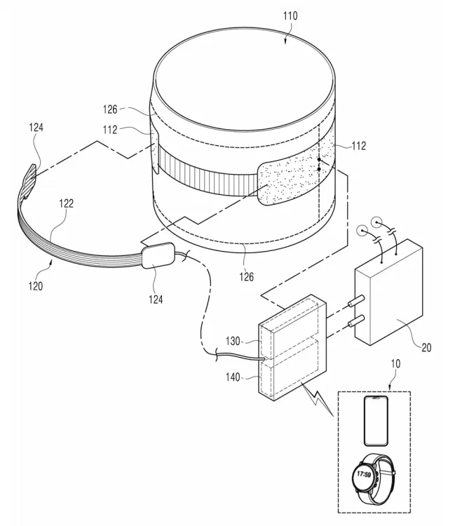 전도성 소재로 만들어진 둘레 감지 구성 요소가 근육 부피 변화를 감지함