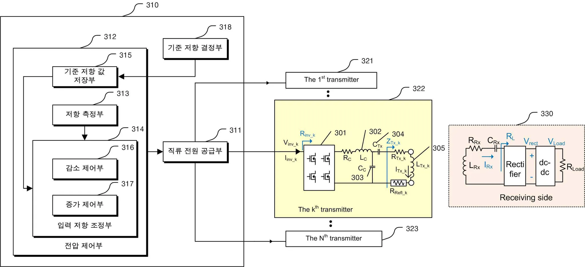 특허명: 복수의 무선 전력 전송 장치들을 이용한 무선 충전 시스템에서의 전력 전송 효율을 개선하기 위한 입력 전원 제어 장치 및 그 동작 방법